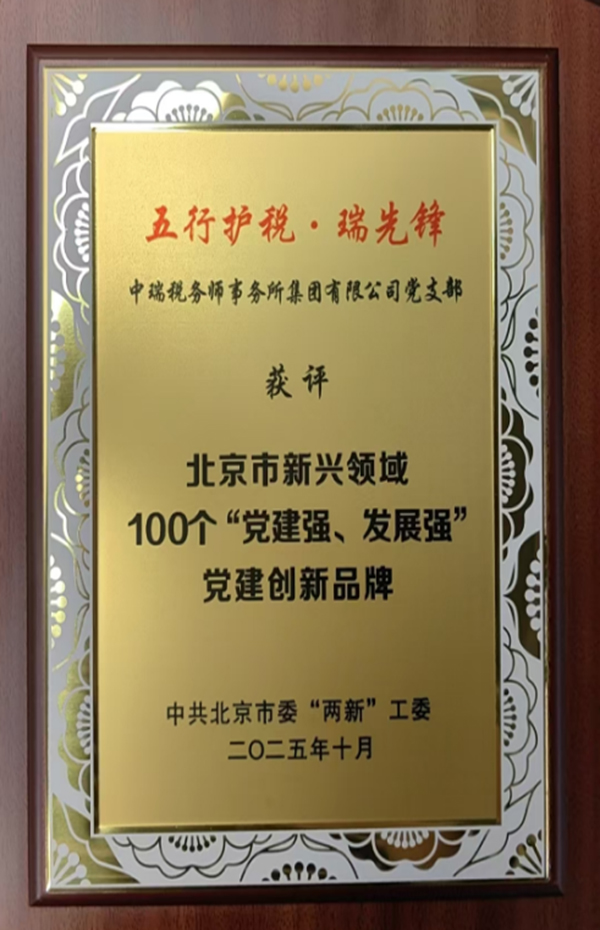 中瑞税务集团为全国最高等级AAAAA级税务师事务所;是中国注册税务师协会推荐的第一批入选服务一带一路“税路通”名单的税务师事务所,在中国注册税务师协会发布的全国百强排名榜中连续多年荣膺第五名;获得北京注册税务师协会授予的“行业突出贡献特等奖”;被中国注册税务师协会正式授牌为“中国税务师专项业务培训基地”;被中国企业财务专家委员会授予“2020中国CFO最信赖的税务师事务所”荣誉称号;2025年中瑞税务集团党支部的”五行护税 瑞先锋“党建品牌被中共北京市委“两新”工委授予“北京市新兴领域100个”党建强、发展强“党建创新品牌”。