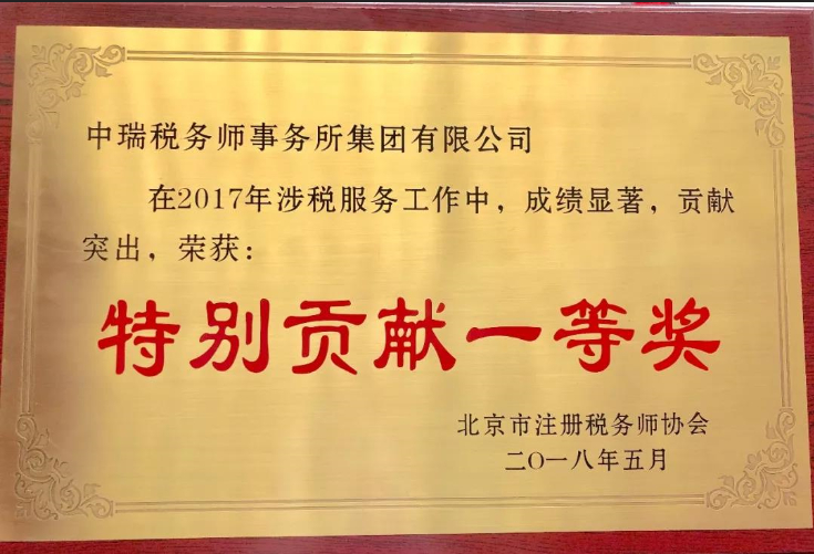 2018年5月25日,北京市注册税务师协会会员大会在新世纪日航饭店盛大召开!协会会长姜信作为主持,分享了此次会议的主要内容及会议精神。会上发布了2018年北京市高等级税务师事务所公告及特别贡献奖、创新发展奖的获奖机构。中瑞税务集团延续了全国最高级别AAAAA级税务师事务所殊荣,并以最高的业务收入名列北京市高等级事务所榜首!同时以连续三年过亿的营收,再次被协会授予“行业特别贡献一等奖”,权威媒体中国税务报权威媒体对此进行了全面报道。