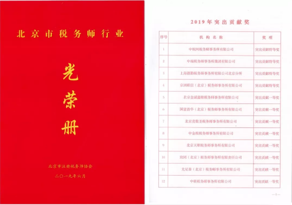 6月14日,北京注册税务师协会召开了三届十二次理事(扩大)会议。会议发布了北京税务师行业光荣榜,中瑞税务集团作为北京市高等级事务所代表之一荣获北京市注册税务师协会颁发的突出贡献特等奖。