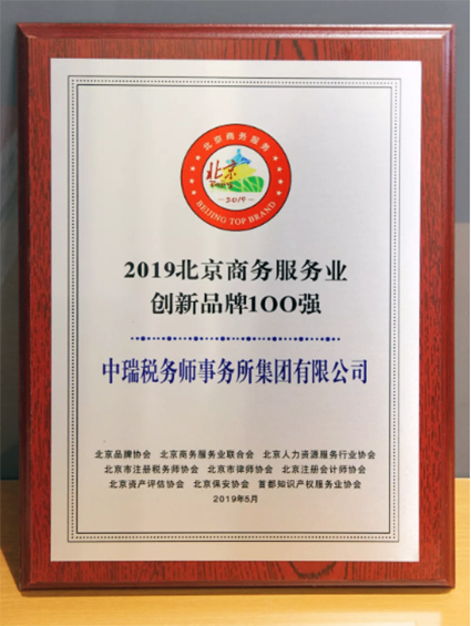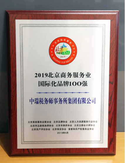 近日,在2019年中国国际服务贸易交易会“法治中国互通论坛”上,由北京市商务局指导,北京商报社、北京商务服务业联合会、北京品牌协会联合各协会开展的“2019北京商务服务业创新品牌100强和国际化品牌100强”评选活动正式发布了榜单。中瑞税务师事务所集团有限公司收获喜讯!成功入选2019北京商务服务业“双百榜”。
