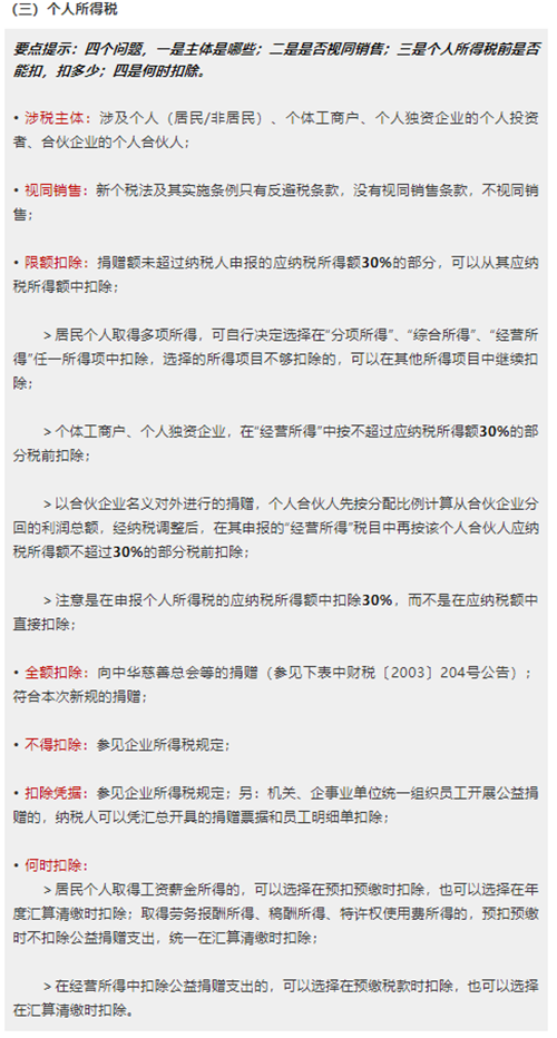 要点提示:注意直捐全额扣的政策只对捐赠物品开了口,对直捐现金没有税前扣除政策。