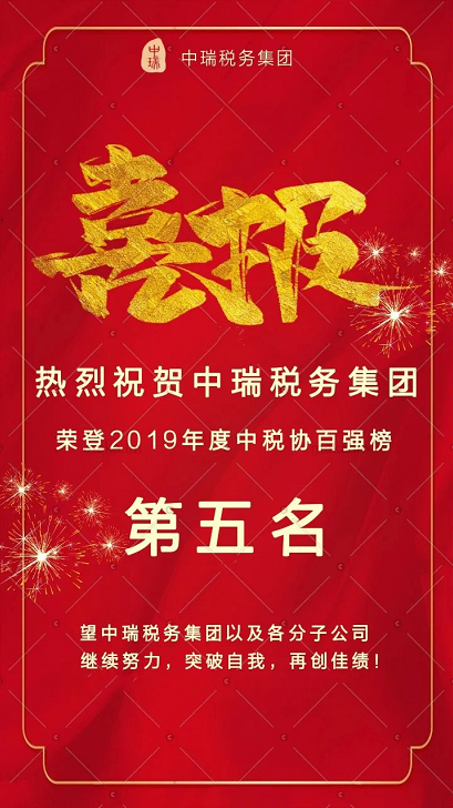 2019年度税务师事务所“百强”发布,中瑞税务集团名列第五!