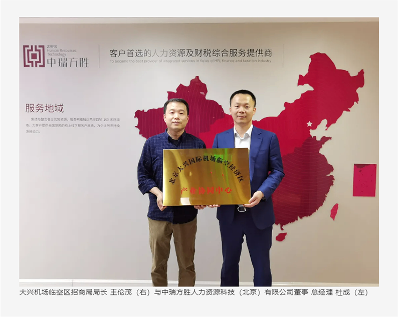 未来,中瑞方胜在大兴临空经济区整体战略规划的引领下,凭借中瑞方胜在薪酬财税、人力资源、管理咨询、系统服务、法律服务、商务综合类服务六位一体的“兴企通”服务体系,全面助力大兴两区建设及临空自贸区的快速发展,为京津冀区域用工企业提供国际化、全方位高端人才业务服务支持。