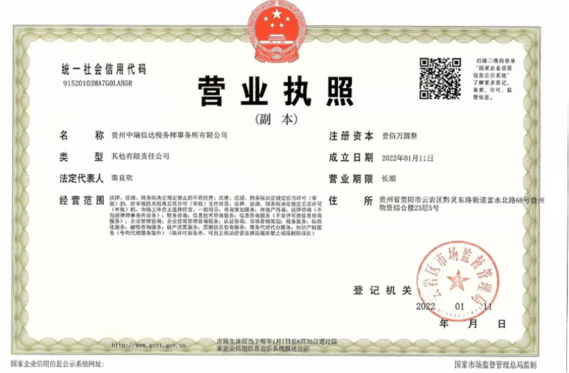 2022年01月11日,贵州中瑞信达税务师事务所有限公司已取得工商营业执照。