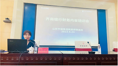 2022年6月24日下午,齐商银行财务内审培训会在齐商银行总行二楼群英厅圆满举办,本次培训会是由齐商银行计划财务部和山东中瑞鲁信税务师事务所联合策划、组织并举办。参加本次培训会的有各分支行财务分管行长、财务负责人、财务人员及总行部室负责报销人员,异地分行同步参加视频培训。