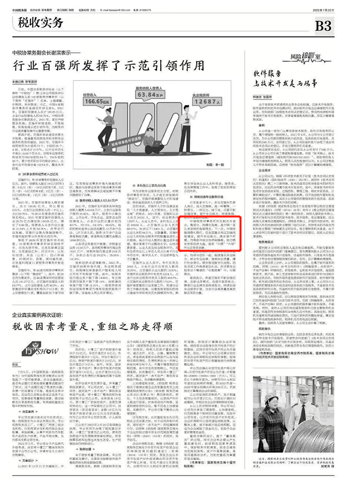中税协常务副会长谢滨在中国税务报刊文《行业百强所发挥了示范引领作用》