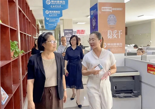 首先,综合运营部总监林赛带领淄博职业学院的各位领导,参观了鲁信公司新村路办公楼,并向各位领导详细介绍了鲁信公司的办公环境、基础业务分公司的工作职能、会计税务专业项目部以及校企合作培训基地及培养模式等内容。
