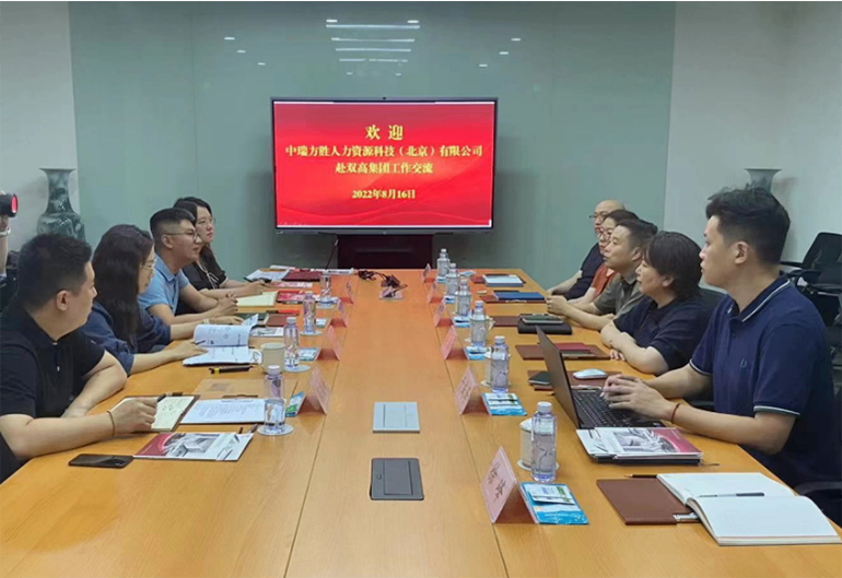 2022年8月16日,中瑞方胜人力资源科技(北京)有限公司(以下简称中瑞方胜)董事、总经理杜成、副总经理马楠及相关业务负责人一行赴双高集团调研交流。双高集团总经理助理郭忠良及相关业务负责人就双方业务发展及未来合作进行座谈。