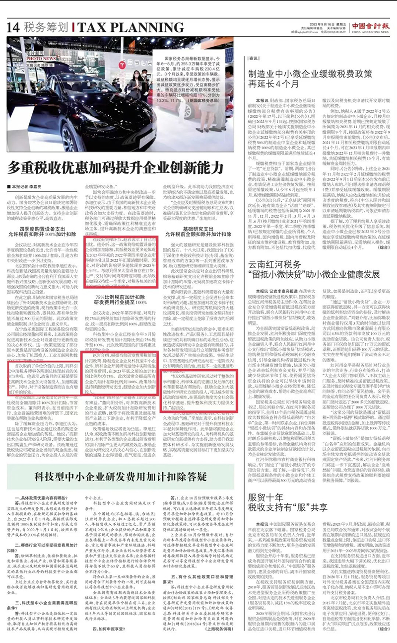 中瑞税务集团董事、副总经理赵岩就《多重税收优惠加码 提升企业创新能力》接受中国会计报采访