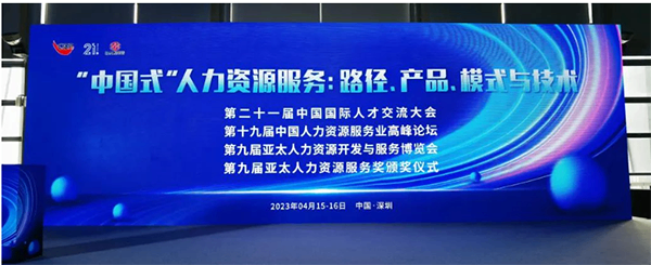2023年4月15日,第十九届中国人力资源服务业高峰论坛、第九届亚太人力资源开发与服务博览会、第九届亚太人力资源服务奖颁奖仪式在深圳会展中心隆重举行。