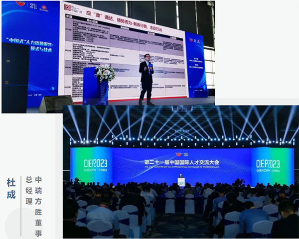 此次高峰论坛中,中瑞方胜董事、总经理杜成进行了题为《“政通人和”——新政新路径》专题演讲。他首先围绕2023政府工作报告中的重点内容,与行业同仁们分享了从人力资源行业视角学习报告的心得。他认为人力资源服务行业只有自律,寻求合规发展,稳中求解才能走的更远。此外,他将人力资源行业在数字化转型过程中容易出现的问题进行了深入分析,建议行业以专精特新为目标做好充足准备,打破现有局面,驶出人力资源服务的红海,开足马力驶入更具价值、更大发展空间的蓝海,拥抱变化保持创新奋斗的状态,他的演讲为行业转型升级提供了全新的思路,与会者反响热烈。