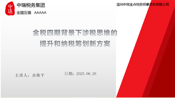 紧追“金税四期”推进步伐 公益讲座助力企业健康发展——温州中瑞金点税务师事务所举办公益讲座