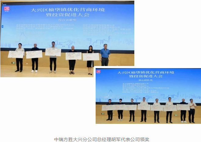 中瑞方胜荣获北京市大兴区榆垡镇优化营商环境“综合贡献奖”、“核心团队奖”两项大奖