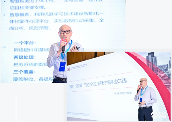 数字技术赋能传统产业和服务业已经成为大势所趋,中瑞方胜敏锐洞察市场需求,抓住转型关键期,推动数字化创新赋能人力资源服务,持续深化“数字技术+人力资源服务”理念。中瑞方胜薪酬福利管理高级顾问胡军出席本次活动,并分享了题为《“薪”政策下的全面薪税福利实践》的主题演讲。胡军首先回顾了近几年政府出台的各类政策,从企业面临的财税政策环境角度出发,分析政策背后的深层意义,帮助大家理清思路,找出关键点。在不确定的大环境下,企业需要有效地利用大数据、系统平台、互联网等技术,才能对企业自身的薪税工作进行有效分析、判断与开展,使薪税管理迈向更高层级。随着金税四期的上线,智慧监管模式的普及,监管力度及透明度前所未有的加强。胡军强调企业在关注薪税的同时也要关注福利的发放与支出,合理合规的福利项目选择、发放形式,费用支出模式,不仅能够提升员工对福利的适应性与满意度,同时也能够帮助企业优化流程,节省成本,达到降本增效的目的。