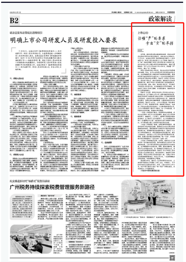 上市公司:读懂“严”的要求 拿出“实”的举措——中瑞税务集团在《中国税务报》发表署名文章
