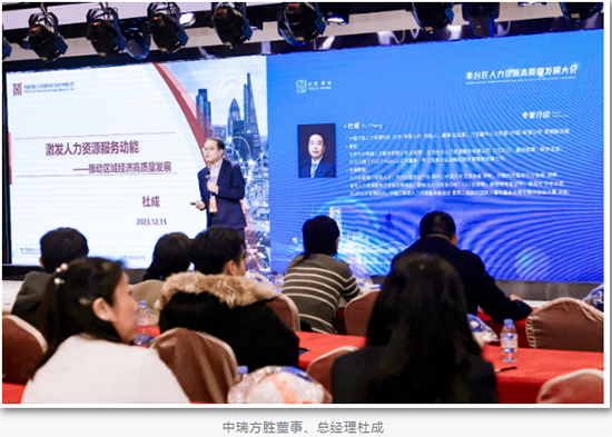 为了更好地稳就业促就业、优化人力资源流动配置,提升区域经济综合竞争力、推动区域经济高质量发展,2023年12月15日,丰台区在中关村科技园丰台园华夏幸福创新中心举办“丰台区人力资源高质量发展大会”。中瑞方胜董事、总经理杜成受邀出席本次大会,并与丰台区人力资源和社会保障局签署人力资源服务战略合作协议,在政策供给和合作交流上厚植高质量发展“人才动能”,打造更加完善的人力资源服务体系。