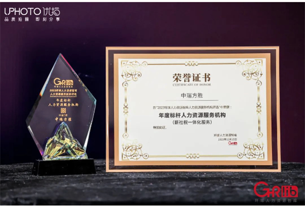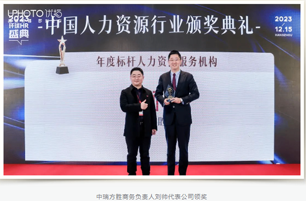 2023年12月15日,由环球人力资源智库GHR举办的「2023环球人力资源盛典暨人力资源服务商颁奖典礼」在杭州隆重举行。中瑞方胜受邀出席,并在2023环球人力资源智库人力资源服务机构评选中,凭借成熟的数字化技术实践、极致的用户体验以及优质的品牌口碑和影响力,获得「年度标杆人力资源服务机构」殊荣。