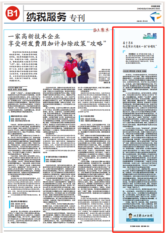 【动态】善于总结也是解决问题的一把“金钥匙”——中瑞税务集团接受中国税务报采访