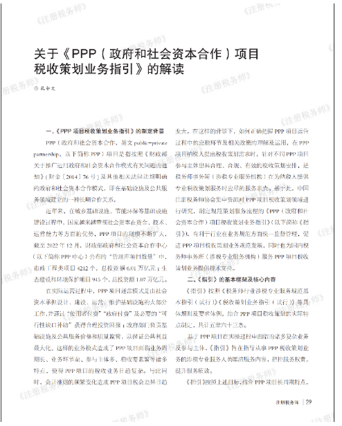 【动态】关于《PPP(政府和社会资本合作)项目税收策划业务指引》解读——中瑞税务集团在《注册税务师》2024年第2期发表署名文章