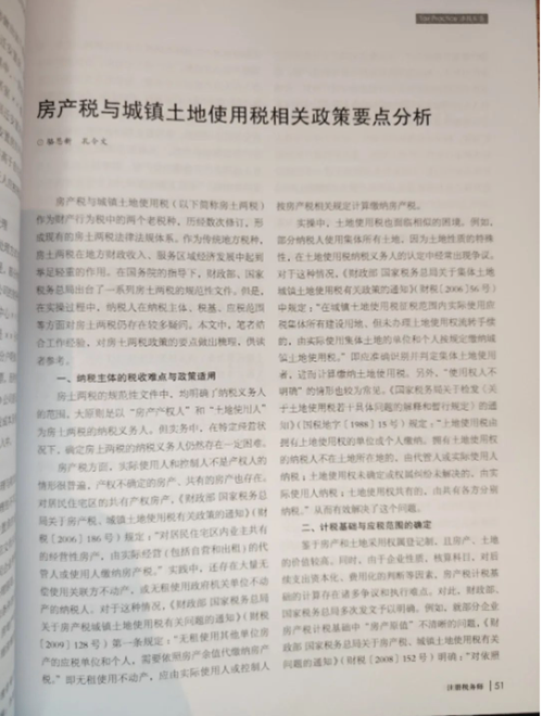 【动态】房产税与城镇土地使用税相关政策要点分析——中瑞税务集团在《注册税务师》2024年第4期发表署名文章