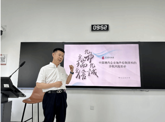2024年6月14日上午,中央民族大学经济学院“财税前沿与税收实务”第八场讲座在丰台校区明德楼104教室顺利举办。中瑞税务师事务所集团总经理贾连峰博士受邀为税务专硕学生作“中国境内企业海外控制架构的涉税风险简析”专题讲座,讲座由史锦华教授主持。