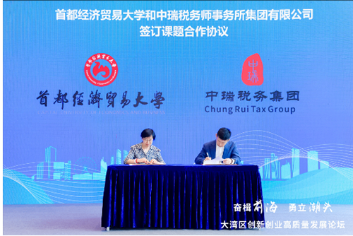 随后,首都经济贸易大学王竞达教授和中瑞税务师事务所集团有限公司总经理贾连峰共同签订“涉税服务业发展的国际比较研究”课题合作协议。