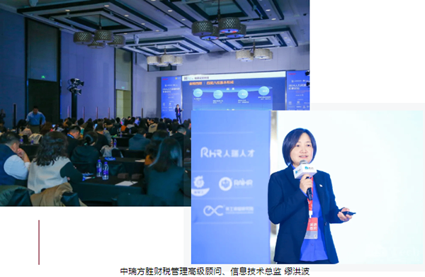 颁奖典礼同期还举办了“人力资源科技年度论坛”,中瑞方胜财税管理高级顾问、信息技术总监缪洪波出席本次论坛,并分享了题为《书薪系统-薪税服务数字化转型升级的AI工具》的主题演讲。缪洪波女士以中瑞方胜书薪系统数字化实践赋能企业人效提升为主题进行了主题分享并给出了专业建议。