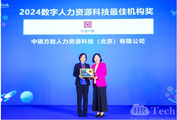 2024年10月25日,由中国领先的人力资源科技平台HRTechChina主办的2024人力资源科技年度论坛在北京隆重举行,中瑞方胜受邀参展并蝉联“2024数字人力资源科技最佳机构奖”。