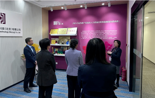 中瑞方胜董事、总经理杜成首先代表公司对沈萍局长一行的到来表示热烈欢迎,就中瑞方胜的发展历程、业务体系、创新成果、经营情况等内容做了详细介绍。他在介绍中提到中瑞方胜近年来不断进行技术创新,在“数字技术+人力资源服务”理念指引下,通过深度整合人力资源管理理论与AI智能技术,凭借近20年薪税专业经验,研发出助力企业薪税高效管理的书薪系统,为企业未来的智能化人力资源管理提供强有力的赋能。凭借行业领先技术优势,中瑞方胜先后获得“北京市专精特新中小企业”、“国家高新技术企业”、“中关村高新技术企业”等认定。以北京为原点,已在全国28个城市设立了分支机构,服务网络覆盖300余座城市,为企业提供着全方位、一站式专业人力资源及财税相关服务。