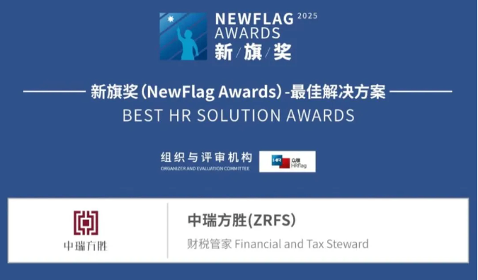 由中国领先的人力资源管理智库HRflag创立,以中国人力资源服务业创新奖项为定位的2025“新旗奖”(NewFlag Awards) 人力资源创新竞赛结果于近日在景德镇重磅揭晓。该奖项的设立遵循「寻找人力资源服务领域的创意与创新(In search of the great creativities and innovations in HR industry)」之理念,探寻来自大中华地区市场的人力资源服务机构所发布的卓越创新产品与解决方案,以推动人力资源服务产业的发展与进步。本次创新竞赛秉承公平公正的态度,历时3个月,由国内外人力资源专家组成的专家委员会基于概念、形式、客户价值三大维度,7项遴选标准来进行评审。在门类各组别中,创意性与创新性皆获得认可的最优异作品才能获颁此奖项。中瑞方胜凭借专注细分领域的“财税管家综合解决方案”,斩获“2025新旗奖——最佳解决方案”大奖。