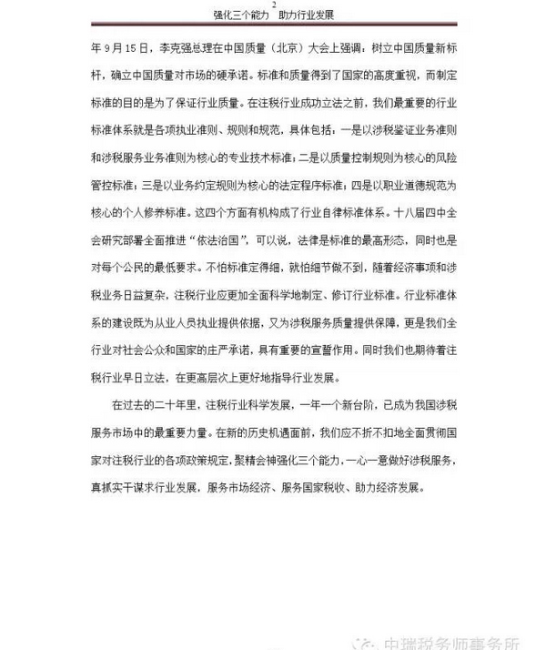 三、推进行业标准建设、提升职业质量、强化注税行业的行业胜任能力。
