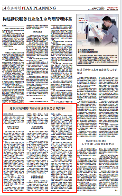 【动态】中瑞税务集团董事、副总经理王阳湖就“逃税案敲响出口应征税货物税务合规警钟”接受中国会计报采访