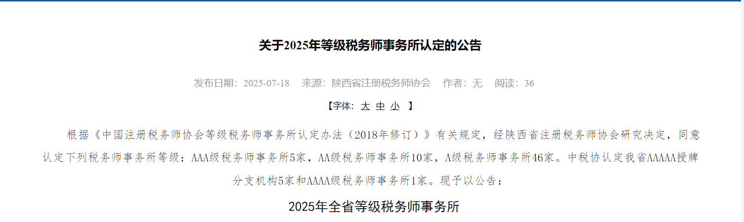 【荣誉】热烈祝贺陕西中瑞合义税务师事务所有限公司被认定为A级税务师事务所