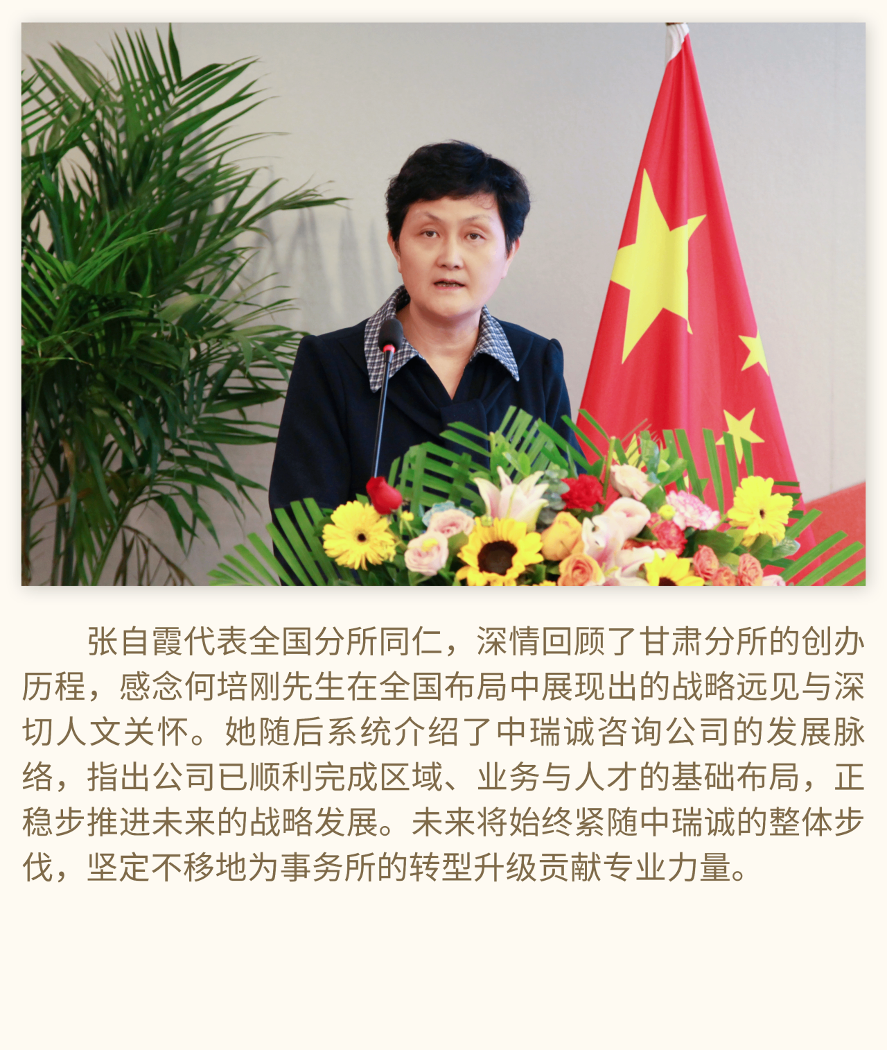 全国五一劳动奖章获得者、全国劳动模范、北京市人大代表、西城区政协委员,北京市西城区地安门邮政支局局长门桂菊 门桂菊局长在讲话中表示,何培刚先生的执业精神是全体同仁学习的楷模。她专程为本次纪念活动带来一款特别设计的纪念封,融入了独特的邮政文化元素,以“方寸见世界,方寸见真情”为设计理念,生动诠释了中瑞诚所展现的社会担当与奋进精神。纪念封选用“中国结”图案邮票,象征在党的领导下,行业同仁团结一心、砥砺前行的坚定信念,祝愿中瑞诚承前启后,再谱新篇、再创辉煌。 何源泉总裁与中瑞诚分所代表、青年及老员工代表、基金会负责人等,分别深情追忆了与何培刚先生往昔相处的点滴。这些来自不同维度的珍贵片段,共同绘就了何老先生丰富、厚重而温暖的一生图景。