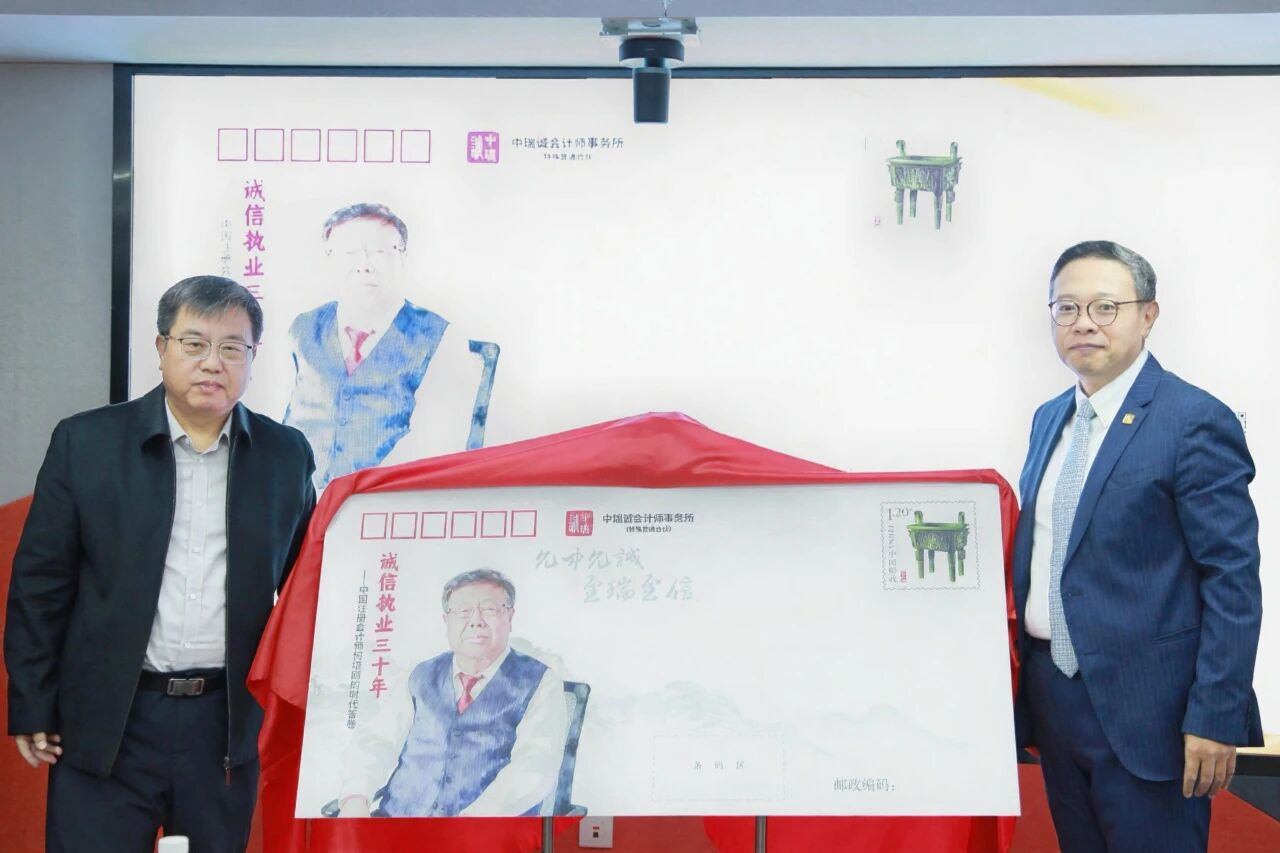 这枚纪念邮资封,将何培刚先生的肖像、“诚信执业三十年”的醒目主题、中瑞诚品牌标识及其核心理念“允中允诚 至瑞至信”和谐相融,共同构成一个有机的整体,将何老先生三十载执业的精神内核浓缩于方寸之间。邮资封上特别选用的“鼎”形图案邮票,更是对“信诺”精神的点睛之笔,象征着何老先生一言九鼎、庄严承诺的崇高风范。