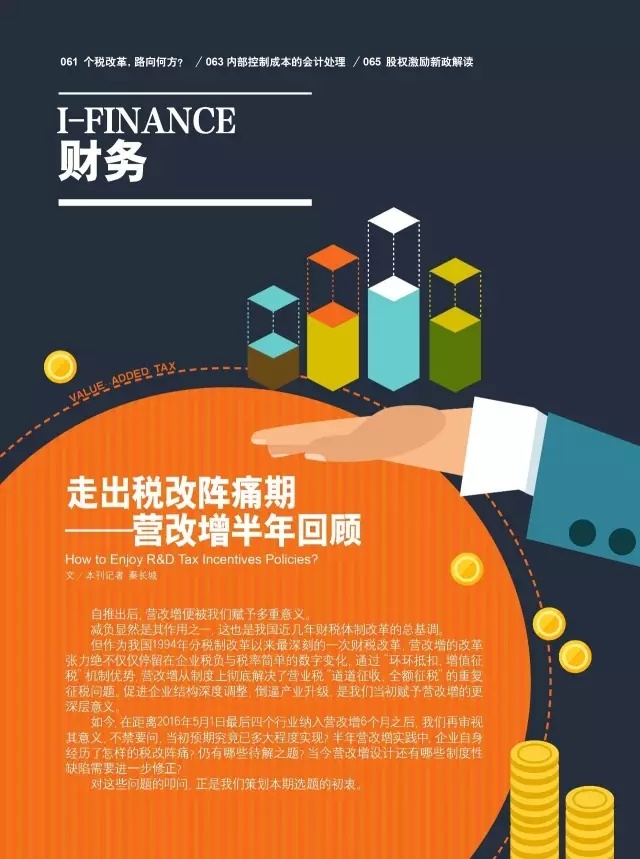 做为1994年分税制改革以来,“营改增”一经推出便被赋予了多重意义!如今距离政策全面推行已过去半年有余,企业如何消除其中的不适应,就显得尤为重要。