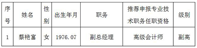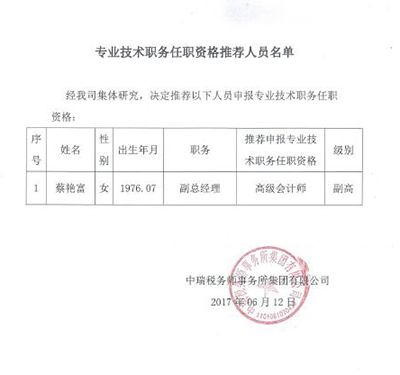 经我司集体研究,决定推荐以下人员申报专业技术职务任职资格: