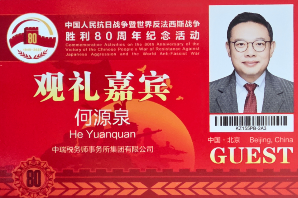 [Dynamic] ChungRui Tax Group Chairman He Yuanquan attends the 3 September commemorative parade marking the 80th anniversary of the victory in the War of Resistance against Japanese Aggression and the World Anti-Fascist War.
